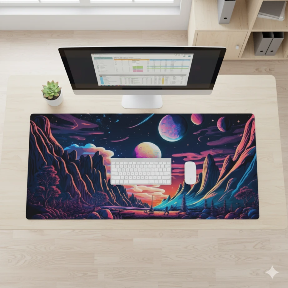 כדור הארץ II – הצבעים הנועזים של השמיים הזרים והכוכבים יוצרים תחושה של הרפתקה בין-גלקטית המושלמת גם לשעות של משחקי מדע בדיוני וגם לעבודה יצירתית בסביבה ייחודית. העיצוב הפנטסטי שלו בשילוב צבעי הסגול והורוד והטורקיז מתמזג בצורה מושלמת עם כל סגנון עיצוב ומוסיף נגיעה חלומית מתוחכמת לכל סביבת מחשב.