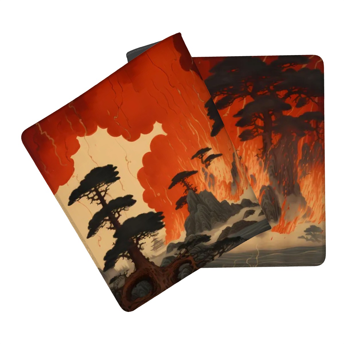 עיצוב המשטח משלב איור בהשראת אומנות מייג’י של שריפת אש עם נופים עזים של עץ פיקוס ונוף אסייתי. משטח מחשב זה מציע חוויה ויזואלית חזקה ומלאת אנרגיה. האדום העמוק והזהב יוצרים אפקט חזק של התפוצצות טבעית על גבול האפוקליפטית בשילוב עם אלמנטים עם גוונים כהים להדגשת המתח שבין הטבע לאדם.