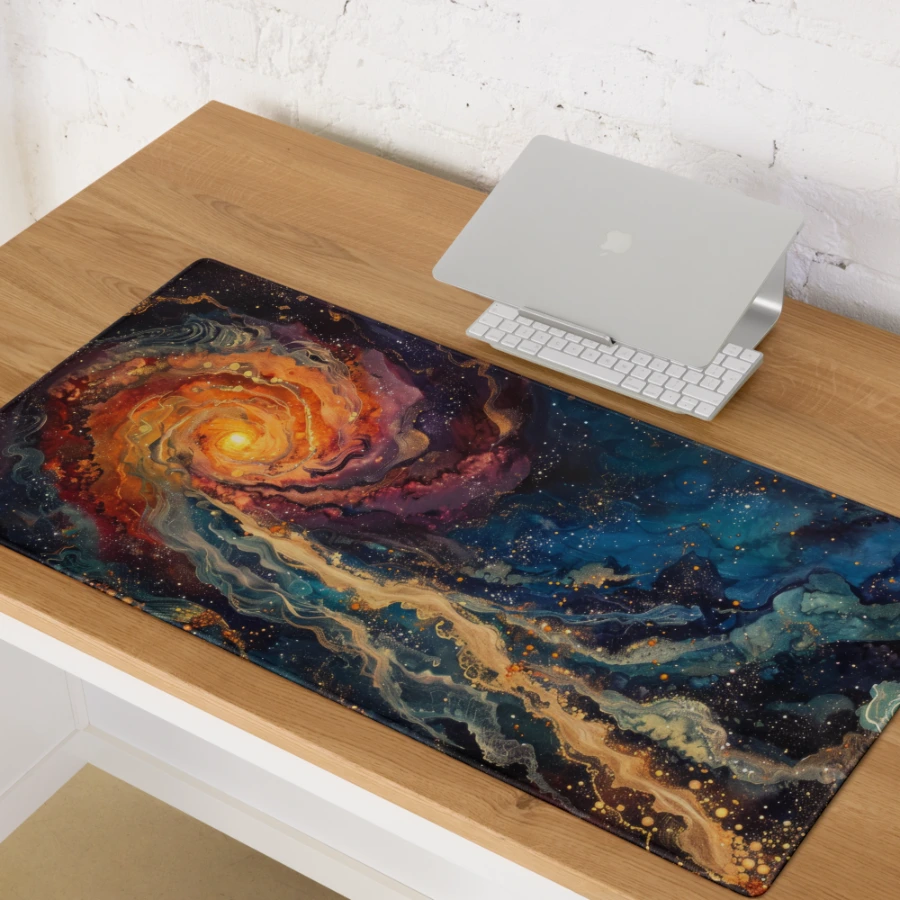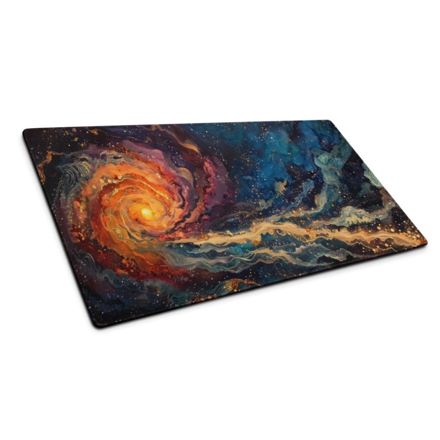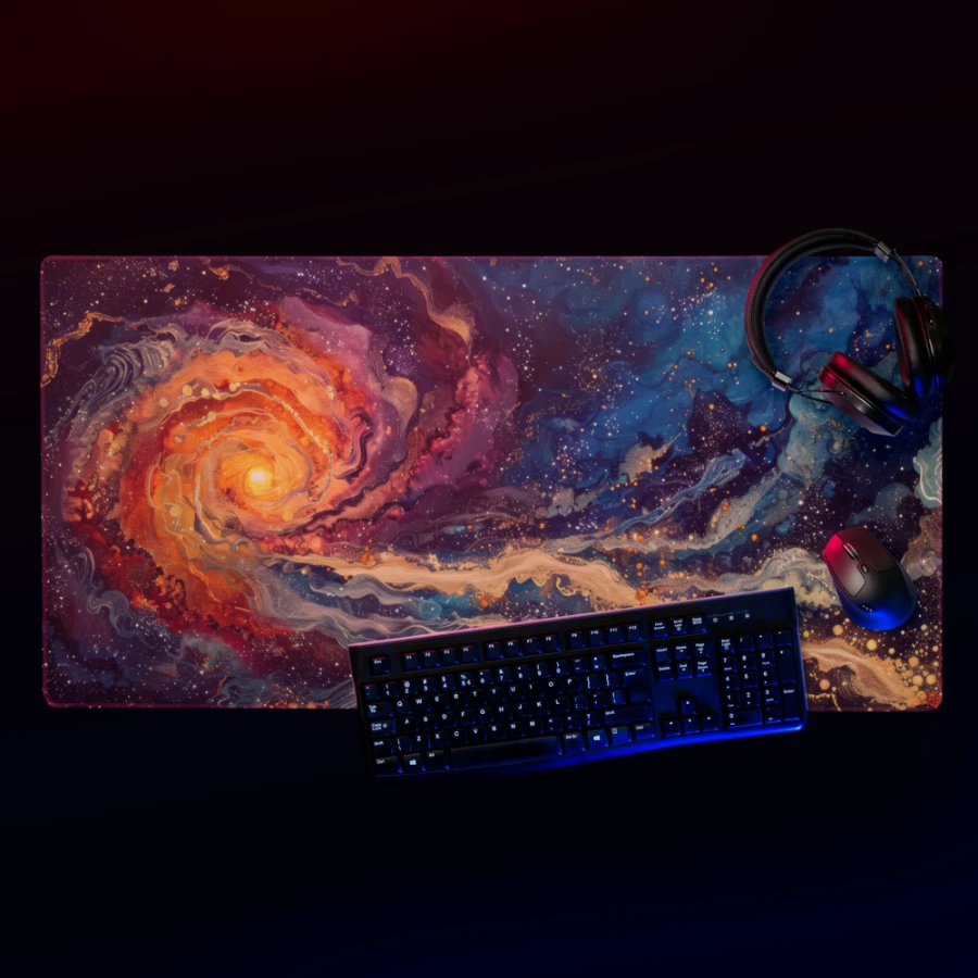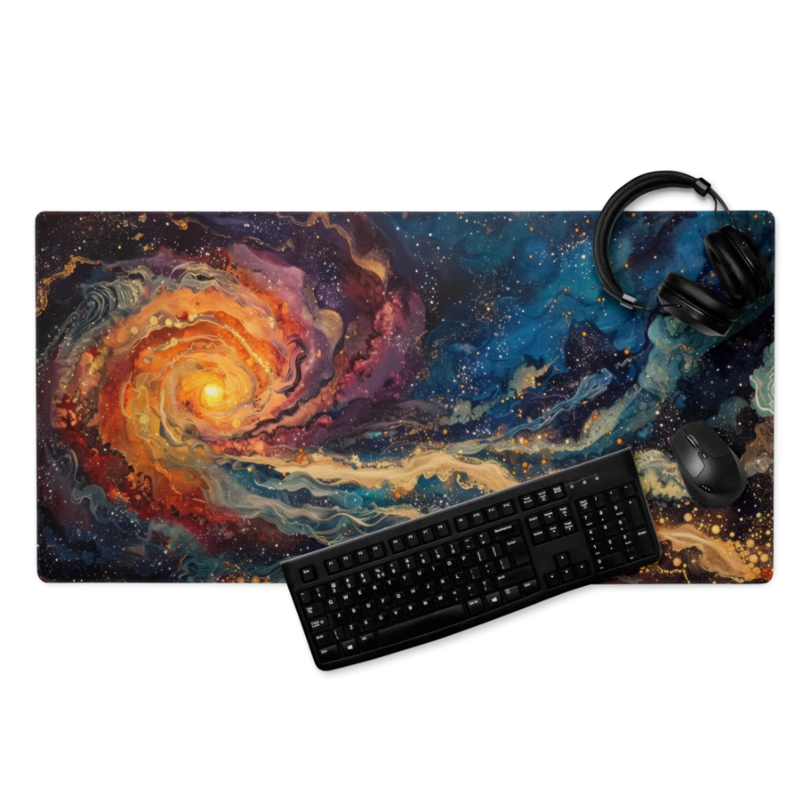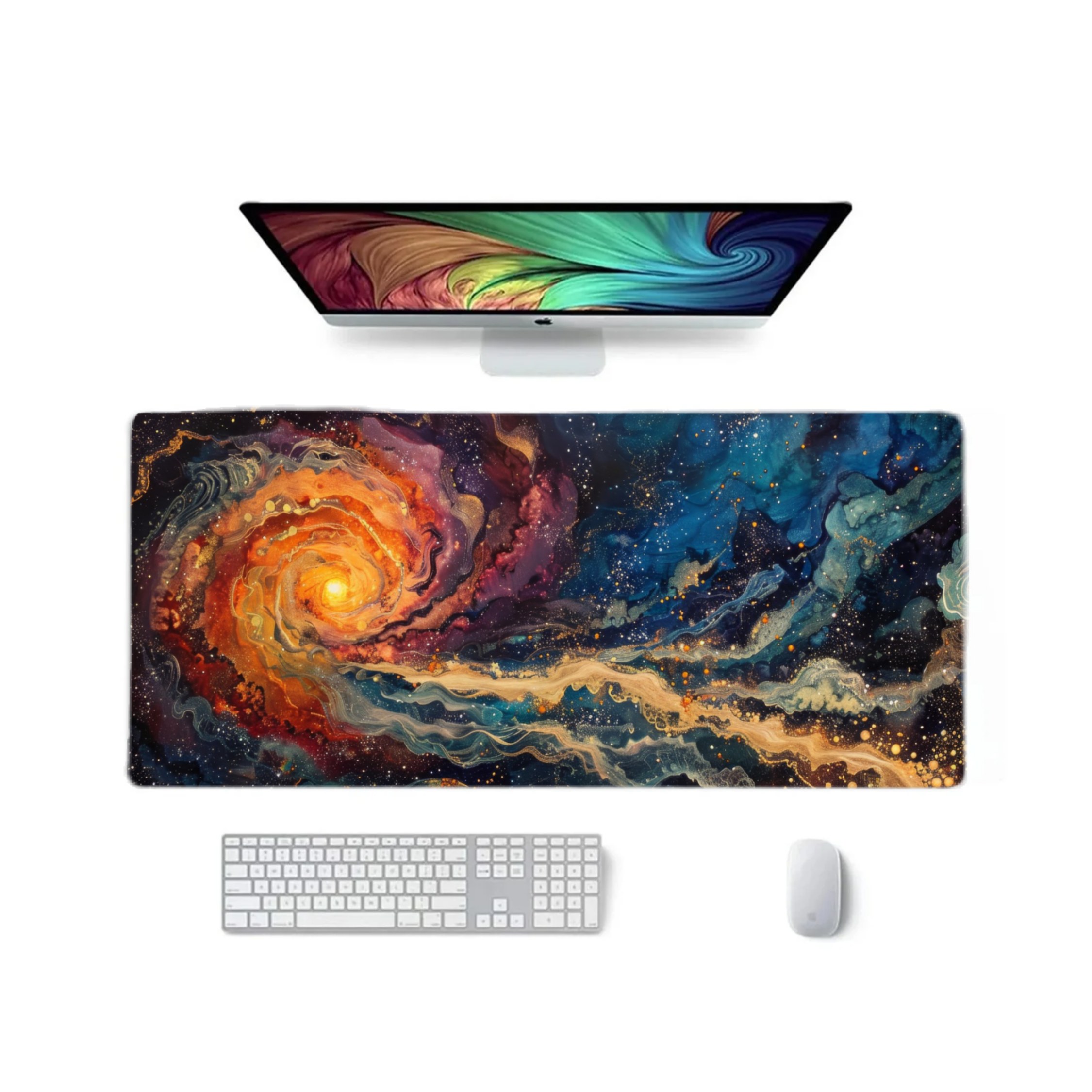 גלקסיה מסתחררת – Spiral Galaxy: פד גדול לעכבר ומקלדת עם עיצוב גלקטי עמוק.