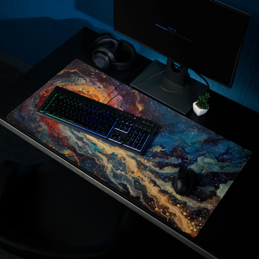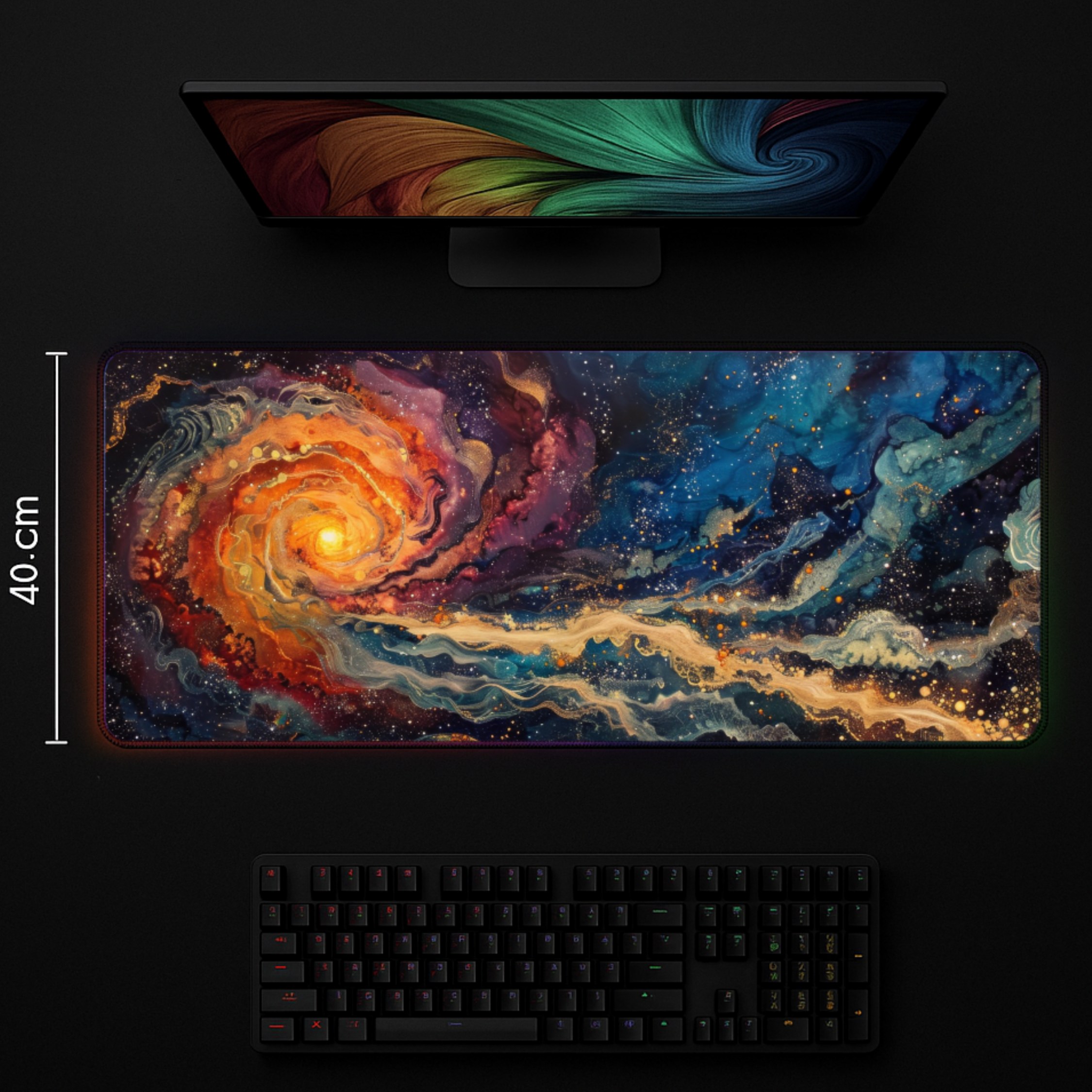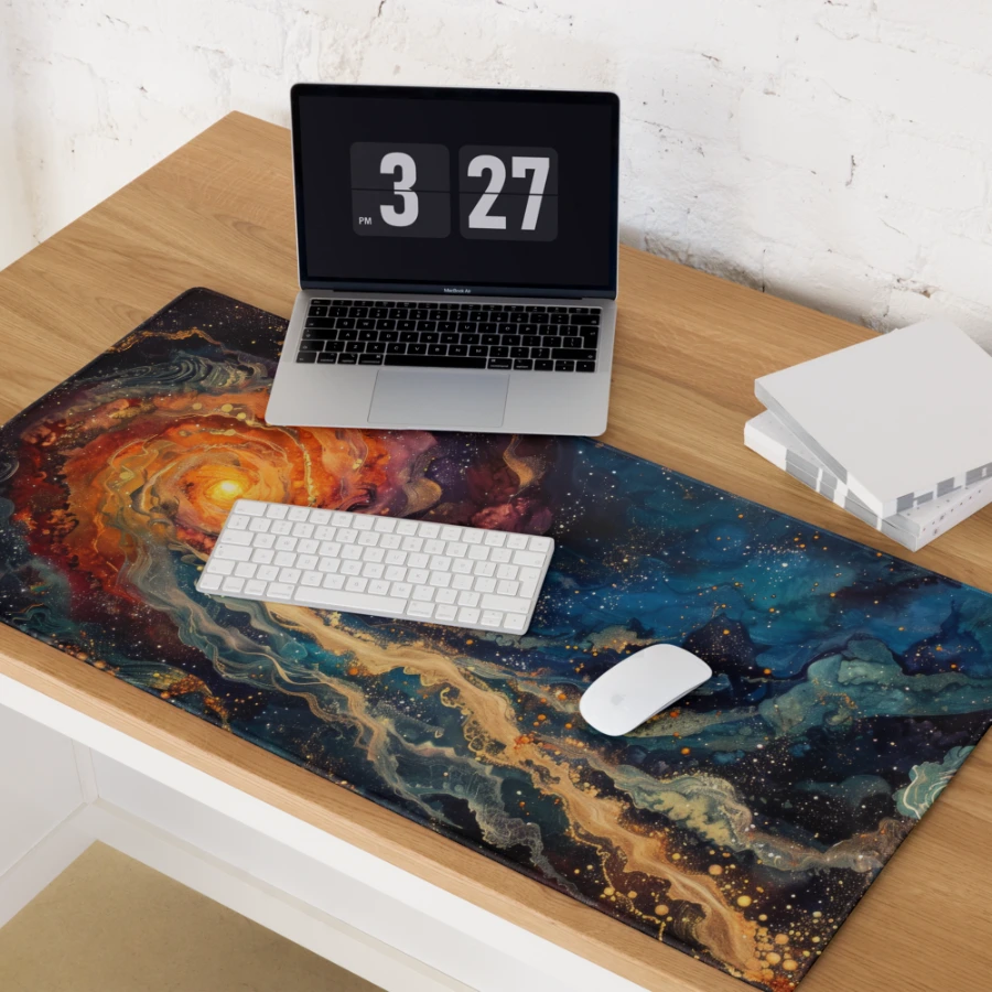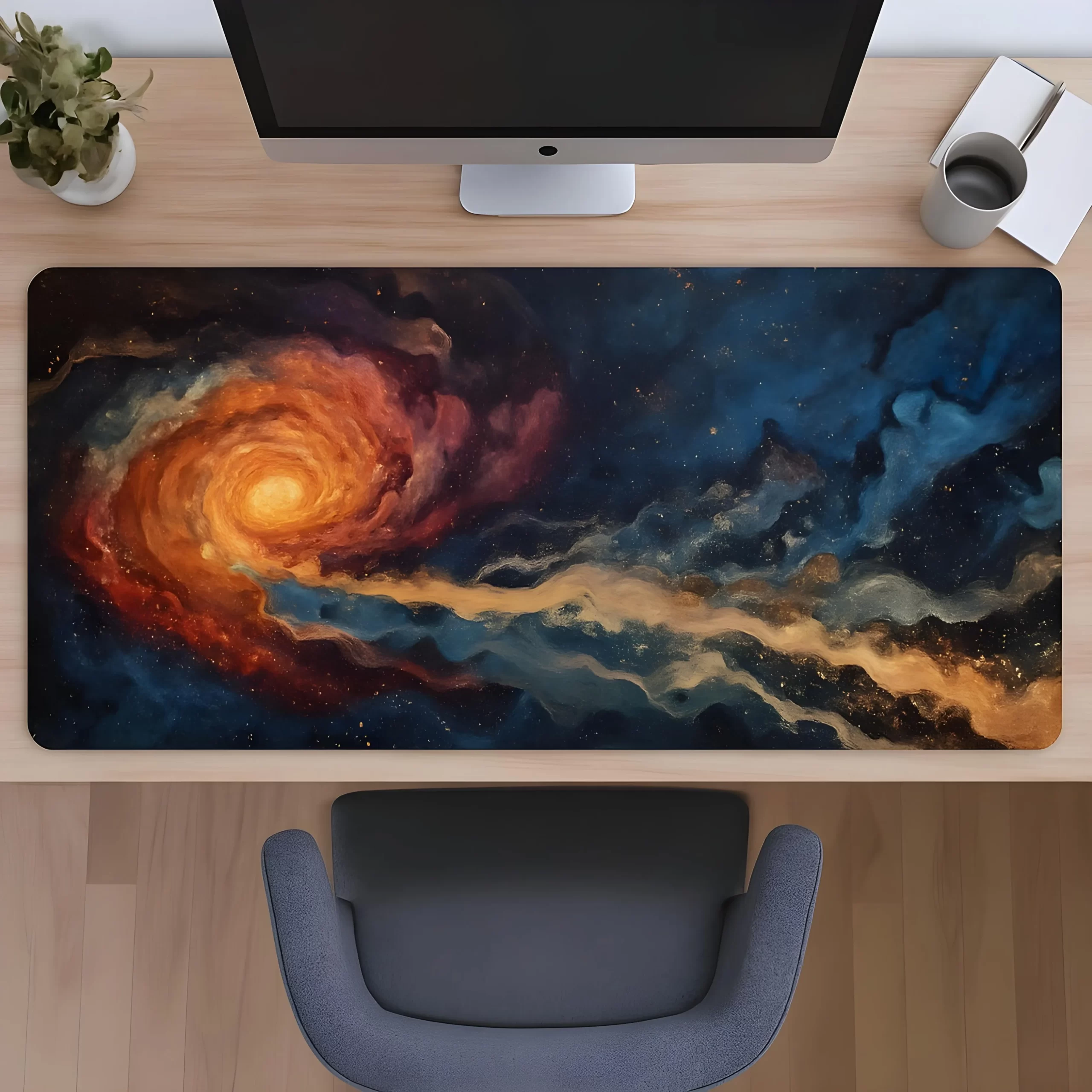 גלקסיה מסתחררת – Spiral Galaxy: פד גדול לעכבר ומקלדת עם עיצוב גלקטי עמוק.